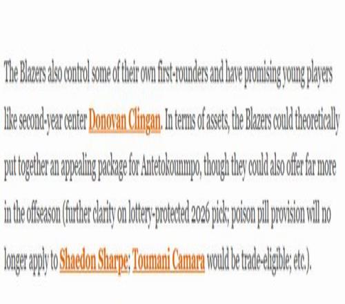 正是這份選秀資產(chǎn),讓開(kāi)拓者屢屢被卷入字母哥轉(zhuǎn)會(huì)至其他球隊(duì)的交易流言中。在這類交易框架下,開(kāi)拓者會(huì)先將手中的選秀資產(chǎn)輸送給雄鹿,以此助力那些自身選秀籌碼不足的球隊(duì)完成交易,同時(shí)為自己換回一到兩名球員。