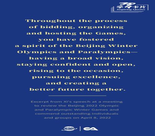 讓我們進(jìn)入今天的學(xué)習(xí)卡片,通過(guò)學(xué)習(xí)習(xí)近平總書記的重要論述,深入領(lǐng)會(huì)冬奧精神的時(shí)代內(nèi)涵。
