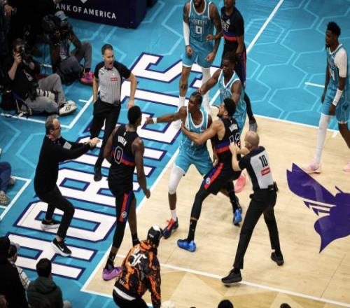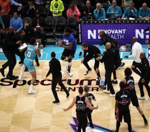 本以為沖突就此結(jié)束的,沒想到之后布里奇斯又沖了出來,揮拳向杜倫打去,隨后2人又發(fā)生沖突。而在這個時候,活塞替補席上的斯圖爾特沖了上來,他是甩開助教,直接沖向布里奇斯,隨后2人發(fā)生沖突,連續(xù)揮拳擊打。裁判和安保好不容易才拉開,之后通過回放給出吹罰,迪亞巴特、布里奇斯、杜倫、斯圖爾特四人都被直接驅(qū)逐。而從沖突來看,他們都會遭到追加禁賽處罰,特別是斯圖爾特從替補席沖上來。