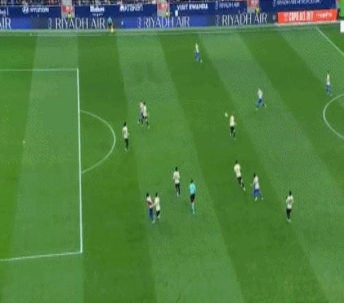 兩球領(lǐng)先的馬競(jìng)并未收手。第33分鐘,阿爾瓦雷斯不停球轉(zhuǎn)移,盧克曼包抄推射;上半場(chǎng)補(bǔ)時(shí)第2分鐘,盧克曼左路倒三角回敲,阿爾瓦雷斯禁區(qū)前沿重炮掛網(wǎng)?;カI(xiàn)傳射,兩個(gè)南美人用最簡(jiǎn)潔的方式肢解了巴薩的整條防守。