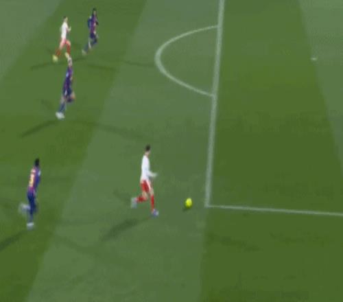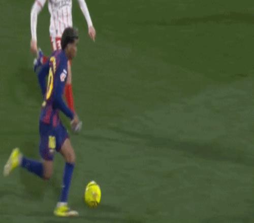 第43分鐘,亞馬爾策動反擊,右路斜傳恰到好處,拉菲尼亞轉(zhuǎn)身抽射,皮球直奔右下角而去,又被立柱拒絕。