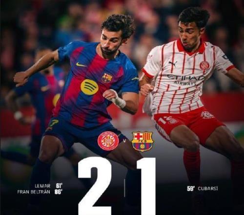 巴薩讓出西甲榜首位置!北京時間2月17日凌晨,西甲第24輪上演加泰羅尼亞德比,巴塞羅那客場挑戰(zhàn)赫羅納。在蒙蒂利維市政球場,巴薩球迷經(jīng)歷了一個令人窒息的夜晚:庫巴西先拔頭籌,但赫羅納迅速扳平,終場前貝爾特蘭絕殺!加上亞馬爾射失點球和兩次中柱的霉運,巴薩最終客場1比2慘遭逆轉(zhuǎn),不僅丟掉榜首,還目送皇馬以2分優(yōu)勢登頂。