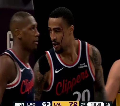 就在中場(chǎng)快結(jié)束時(shí),快船的追分出了意外
